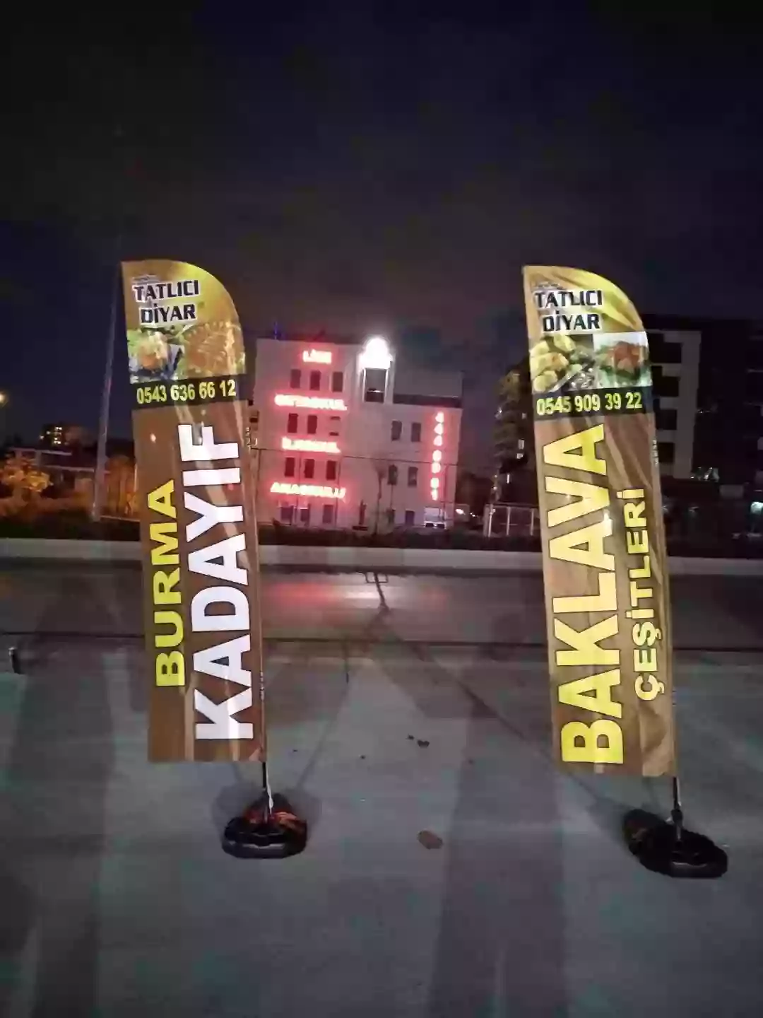 Tatlıcı Yelken Bayrağı üzerinde firma adı, firma logosu, firma telefonu, hizmet saatleri, satışı yapılan ürün resimleri, özel kampanyalar, özel hizmetler, sosyal medya adresleri iletişim numaraları olabileceği gibi aynı zamanda sadece ana hizmete veya ana ürüne yönelik ana başlıklar yazılarak da istenilen reklam yapılabilir.